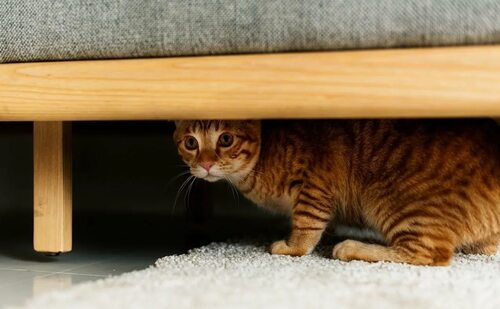 Кошка под кроватью