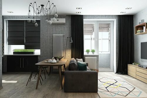 Гостиная лофт 40кв